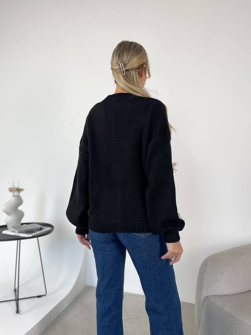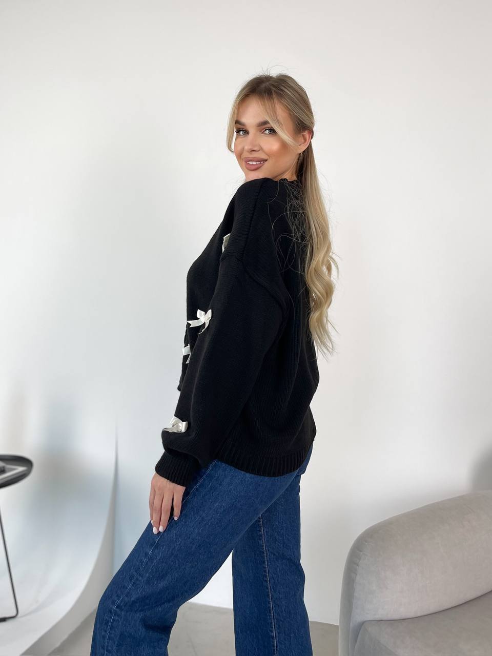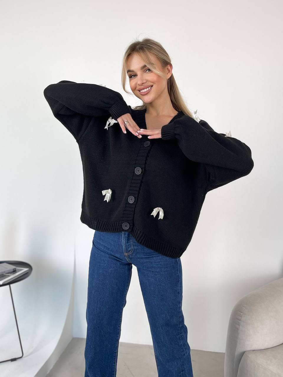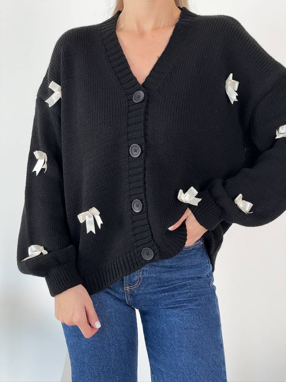 Жіночий Чорний Кардиган Вільного Крою з Білими Бантиками